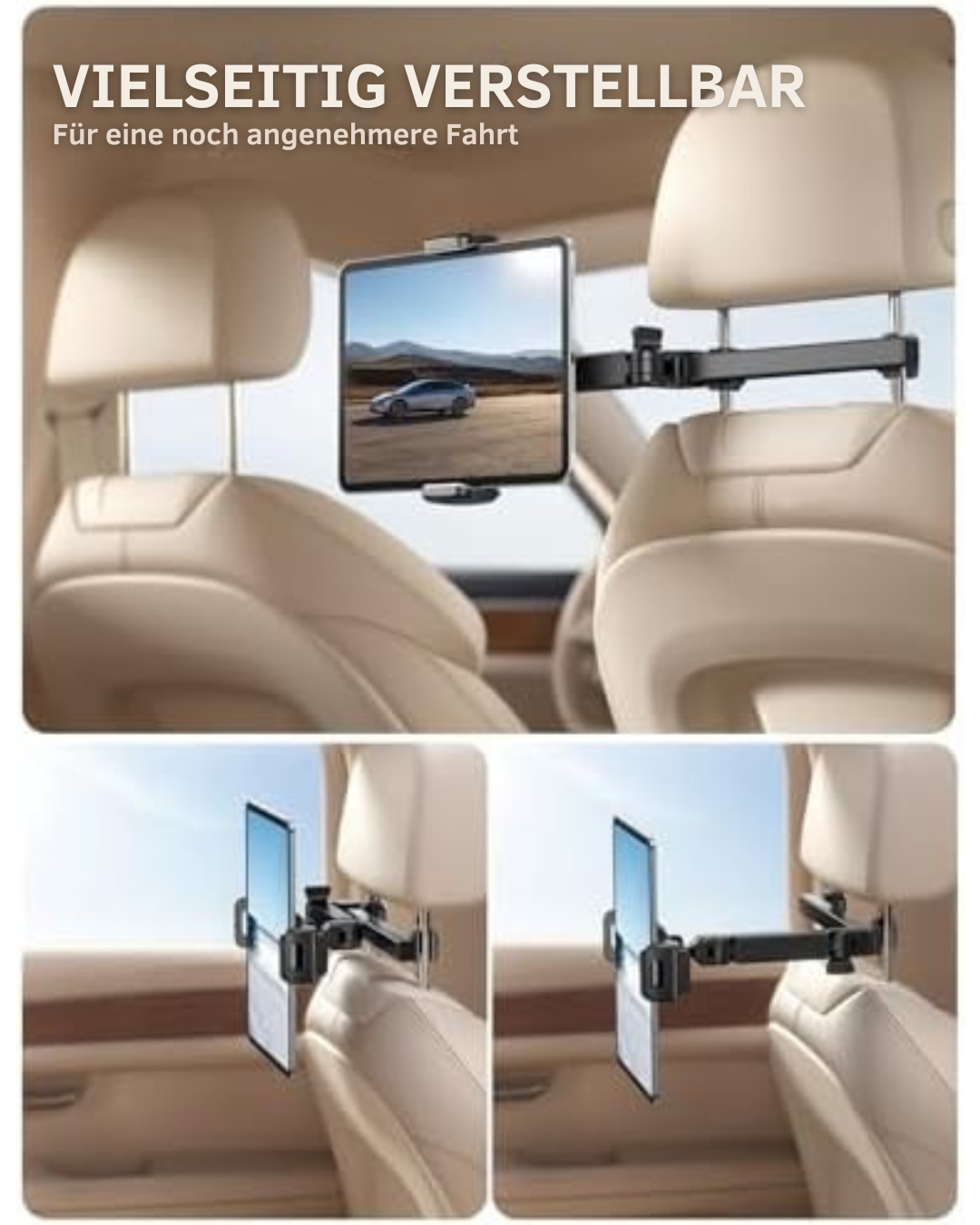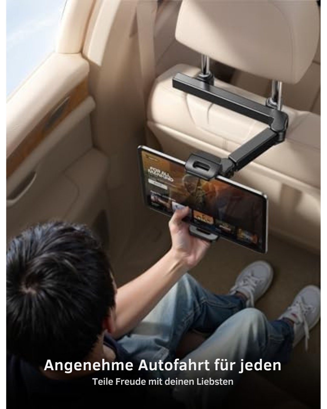 Ja, der flexible Knickarm lässt sich individuell verstellen – nach oben, unten, näher oder weiter weg. So hat jeder Mitfahrer den perfekten Blick aufs Display, ohne das Gerät anfassen zu müssen.